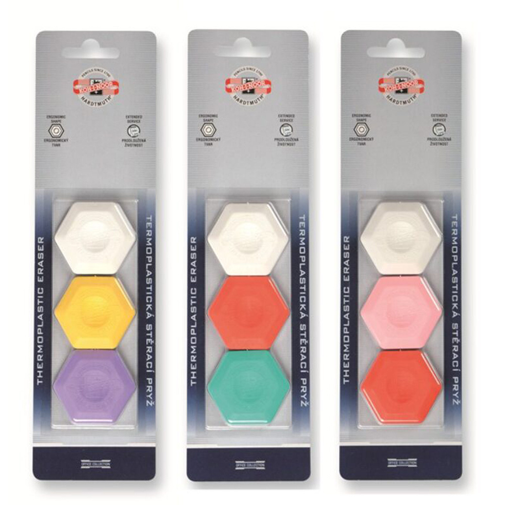 Koh-i-noor Guma termoplastická je guma na gumovanie v tvare šesťuholníka. Balenie obsahuje tri gumy z pevného materiálu, ktorý zabezpečuje tvrdosť gumy a jej odolnosť voči polámaniu pri ohýbaní.