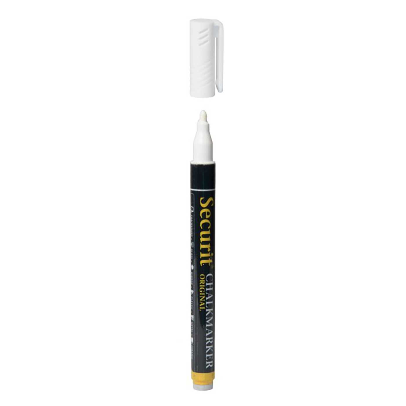 Kriedová fixka Securit má rovný hrot s veľkosťou 1 - 2 mm podľa použitej plochy.