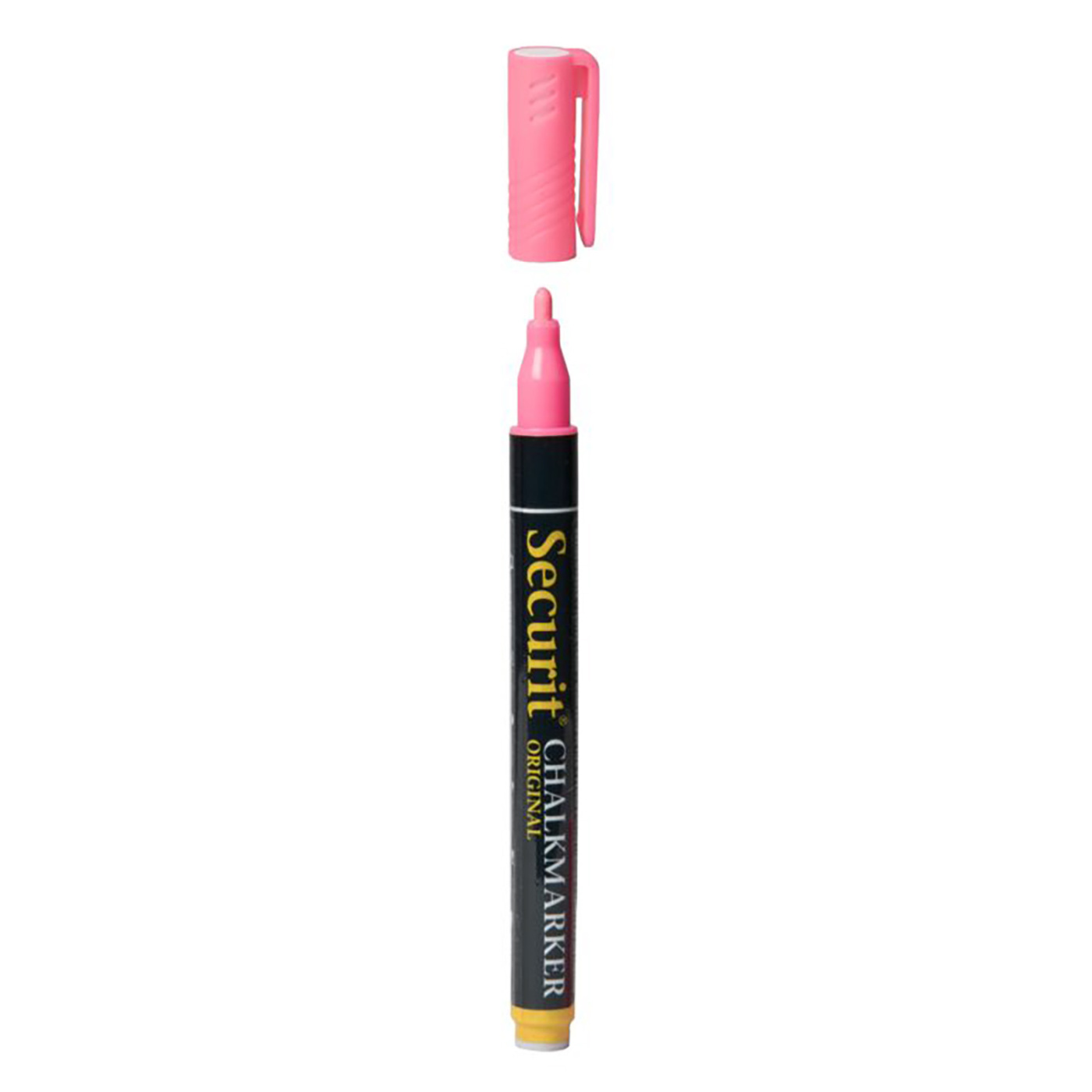 Kriedová fixka Securit má rovný hrot s veľkosťou 1 - 2 mm podľa použitej plochy.