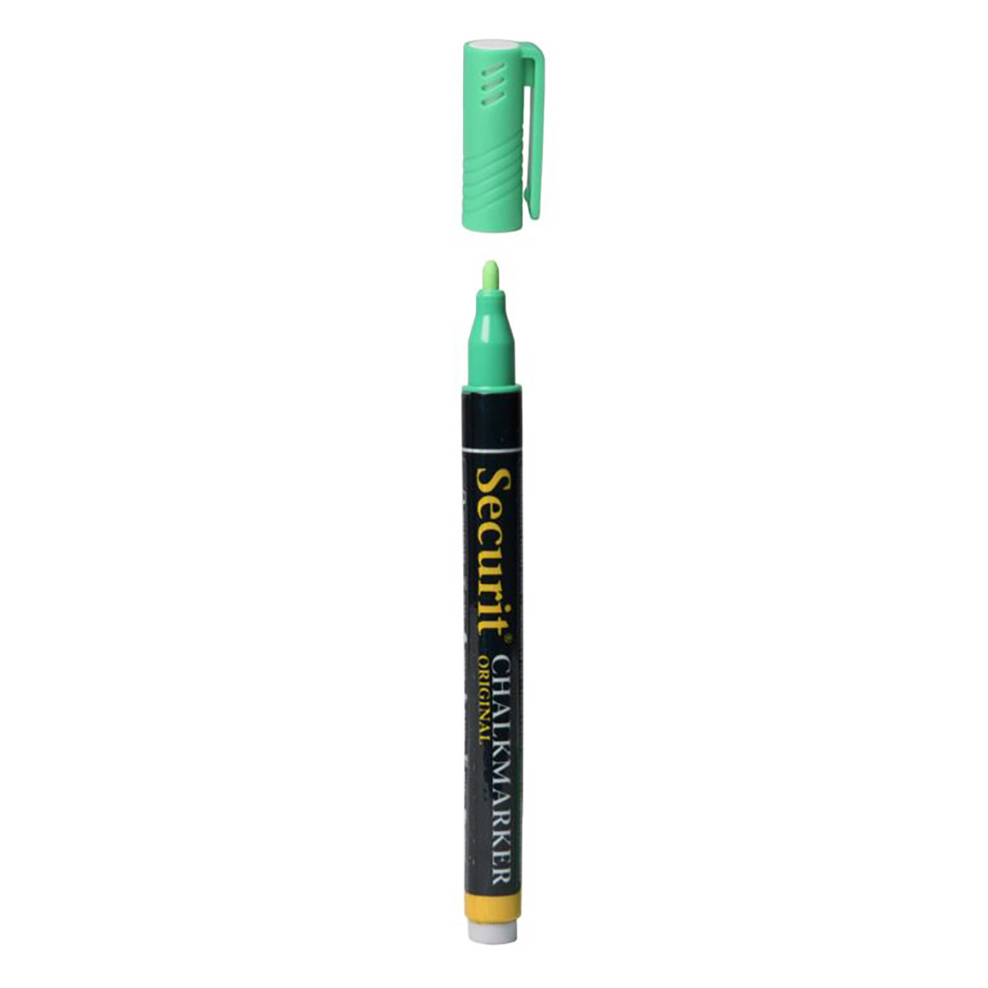 Kriedová fixka Securit má rovný hrot s veľkosťou 1 - 2 mm podľa použitej plochy.