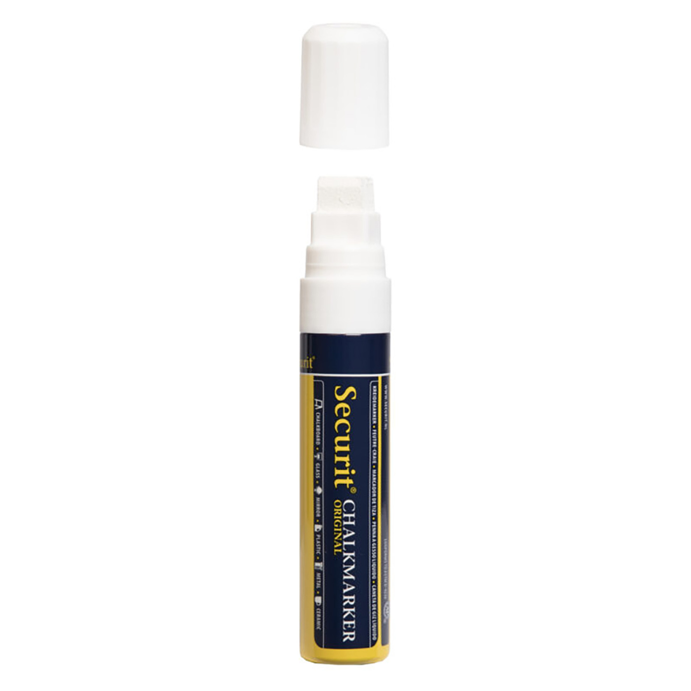 Kriedová fixka Securit má rovný hrot s veľkosťou 7 - 15 mm podľa použitej plochy.