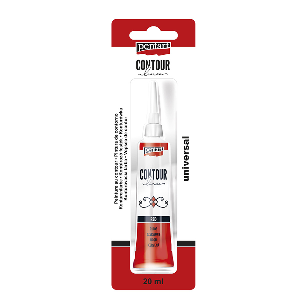 Univerzálna kontúrovacia farba je hustá farba na vodnej báze použiteľná na ľubovolný povrch. Určená na kraeslenie línií a obrysov, na zvýraznenie objektov a ich detailov, alebo na tvorbu plastických elementov.