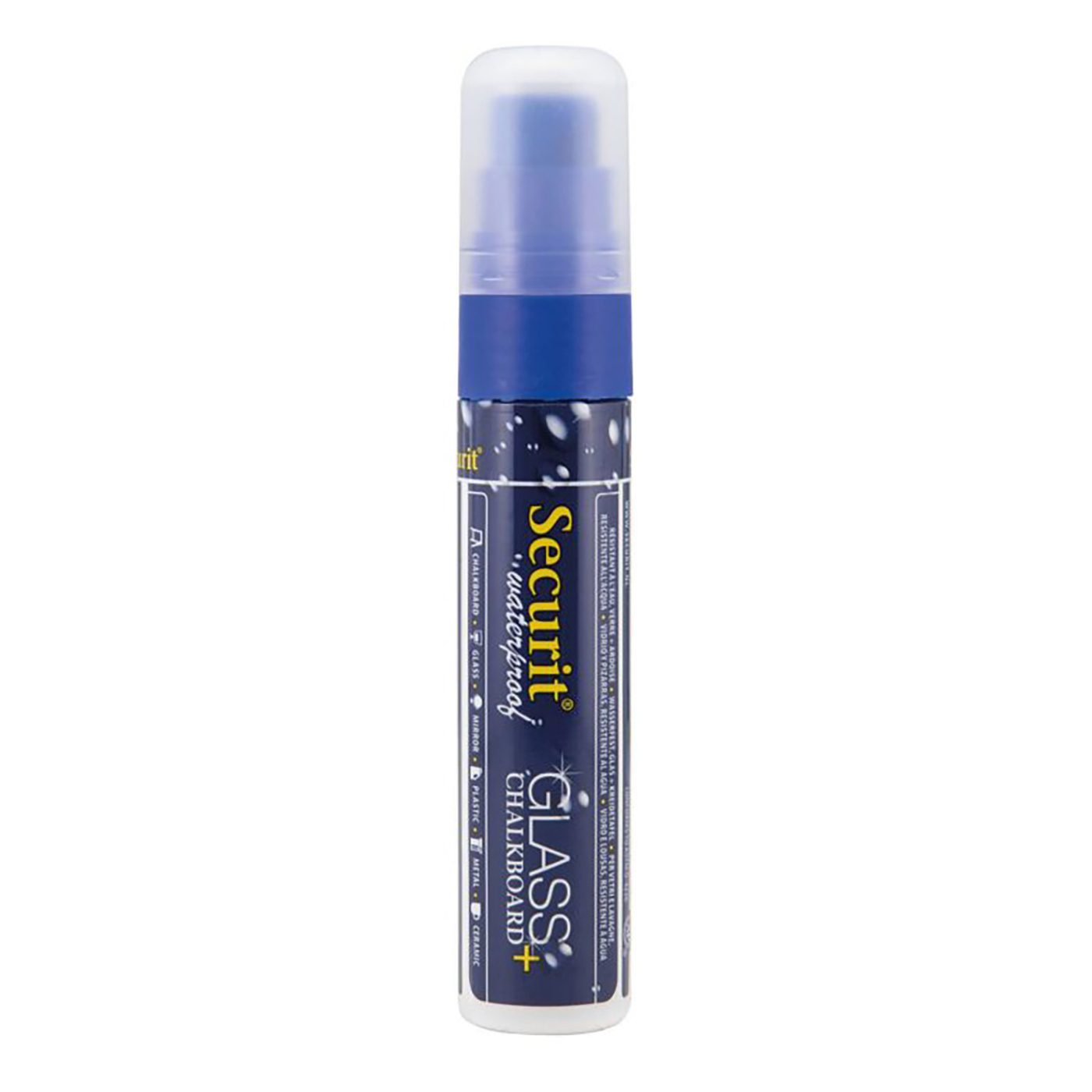 Kriedová fixka Securit má rovný hrot s veľkosťou 7 -15 mm podľa použitej plochy.